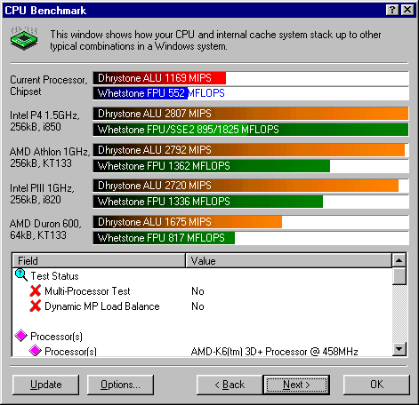 I did also run some other benchmarks, but I did not keep track of all the values. So I can just share the K6-III 456Mhz results