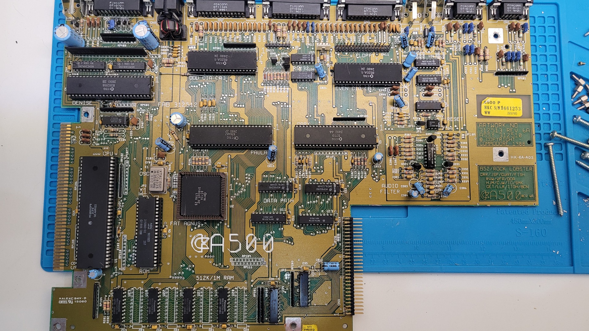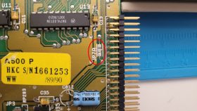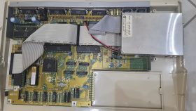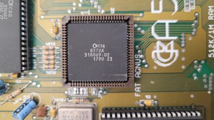 Inside, there’s a fat Agnus 8372A (capable of addressing 1 MB chip RAM) paired with a Denise R8 (OCS) rather than a SuperDenise (ECS). While it’s not an ECS setup, this combination at least allows Extra Half-Brite (EHB) mode.