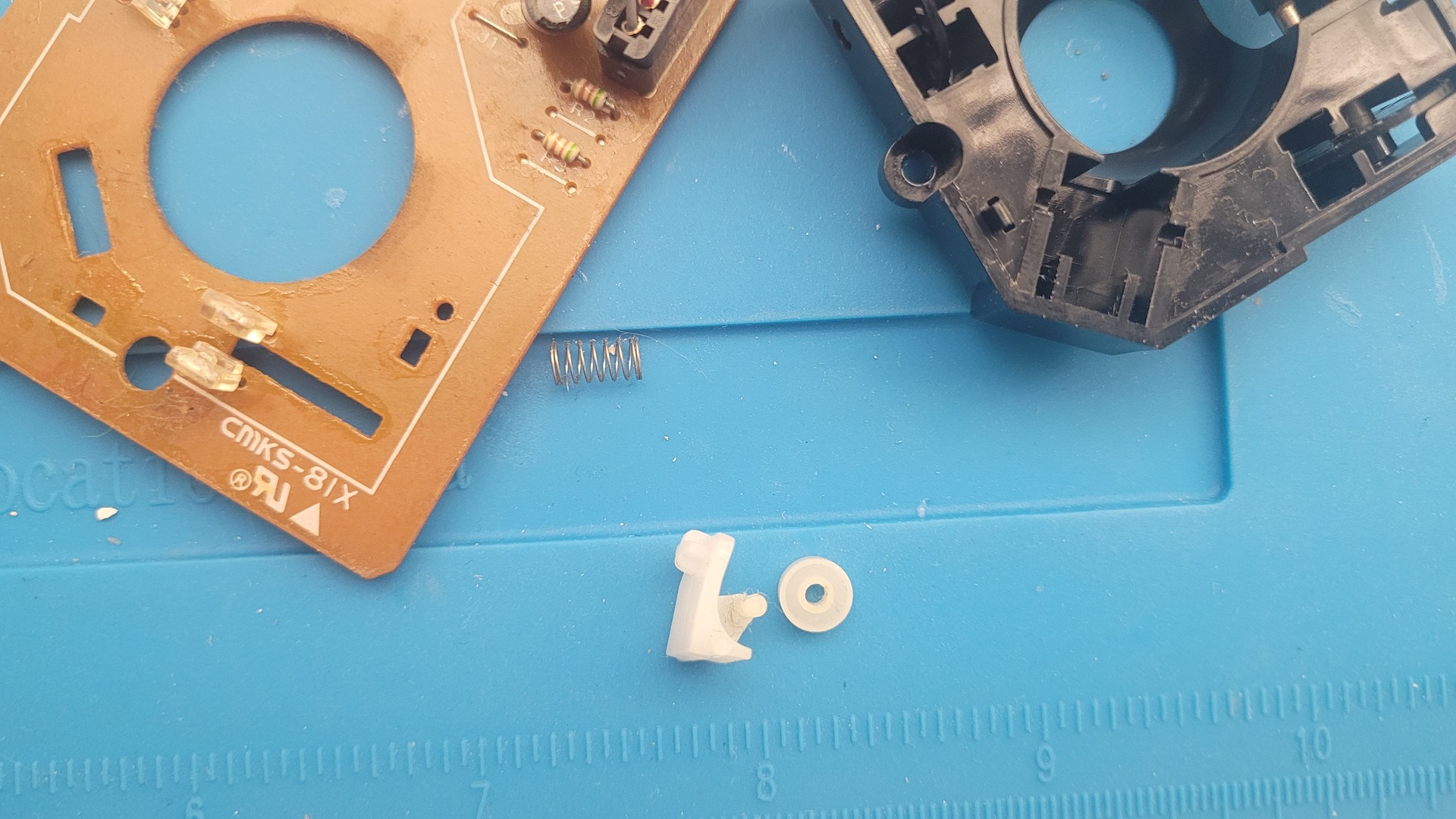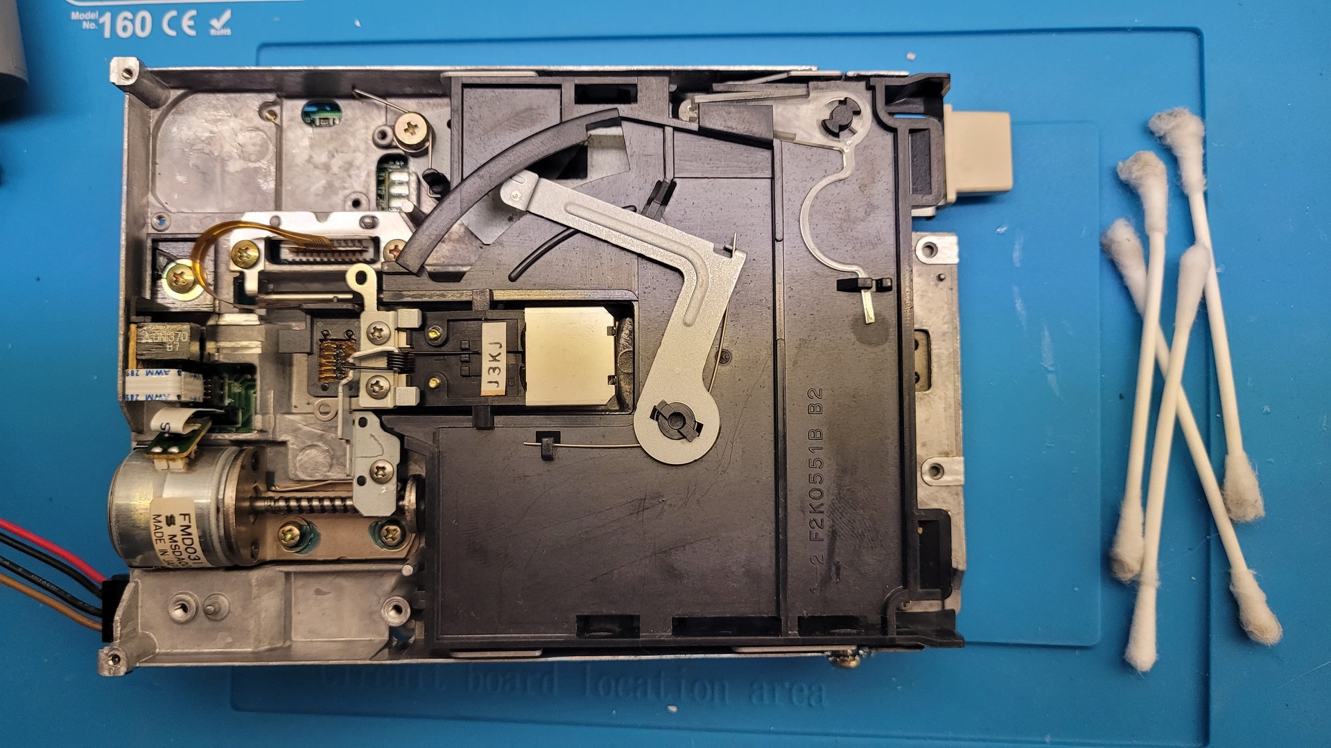 Next, I cleaned all internal parts using alcohol and some Q-Tips, and I retensioned the spring by gently pulling both sides at the same time.