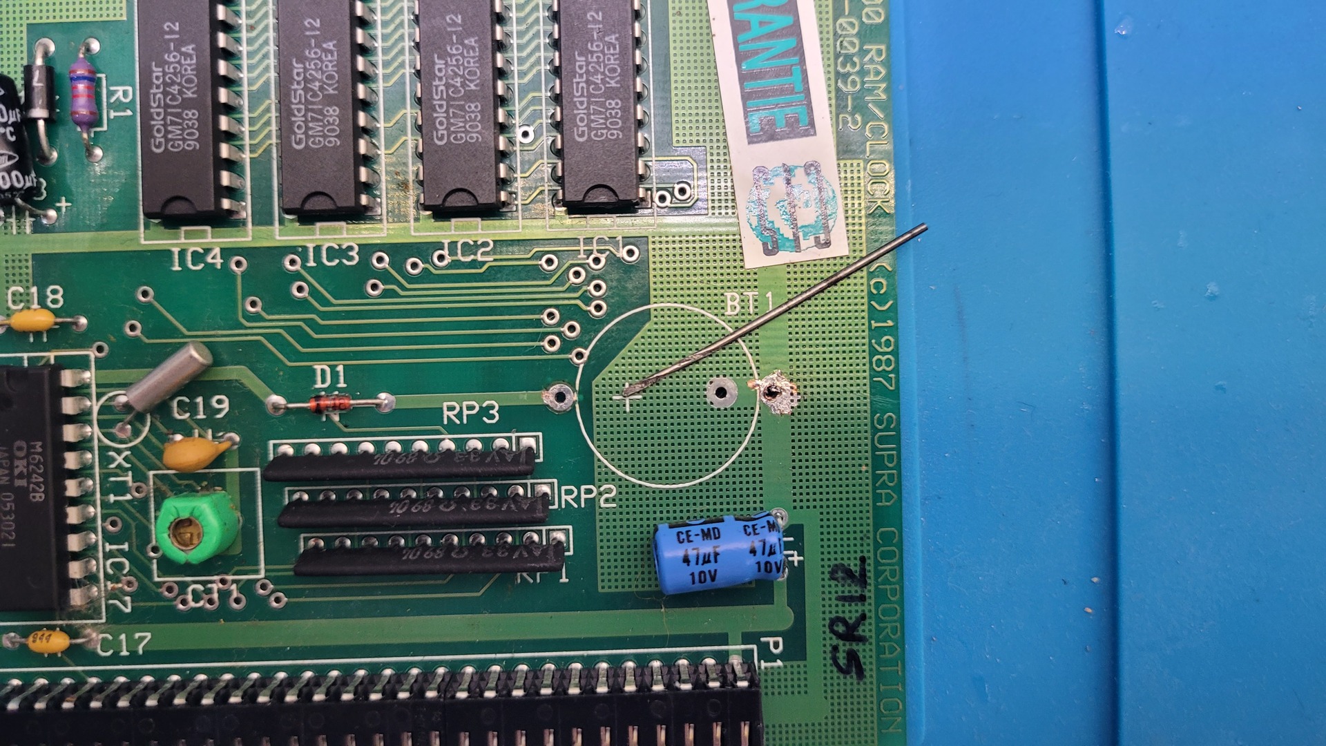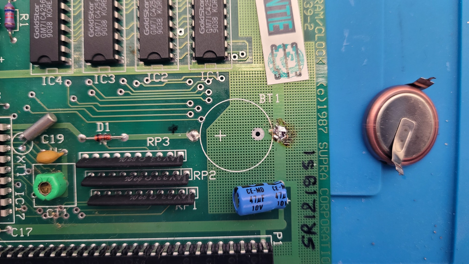 Here’s a look at the motherboard and memory card after cleaning and the battery upgrade: