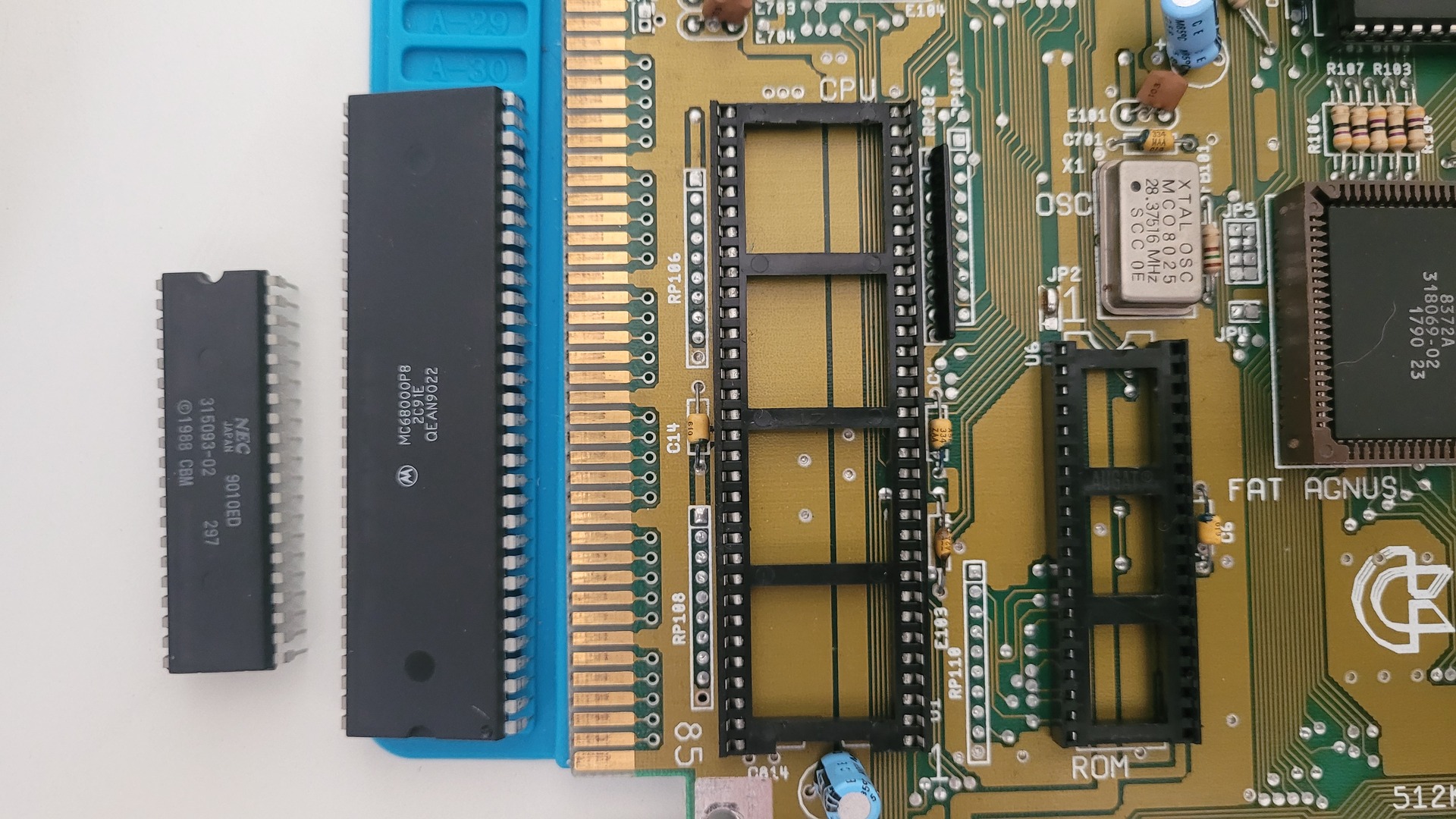 The Agnus and Denise chips are shown here, highlighting the OCS configuration: