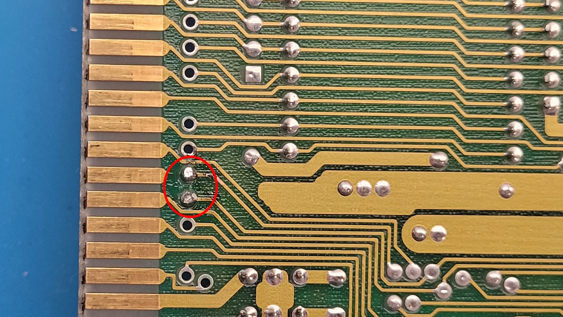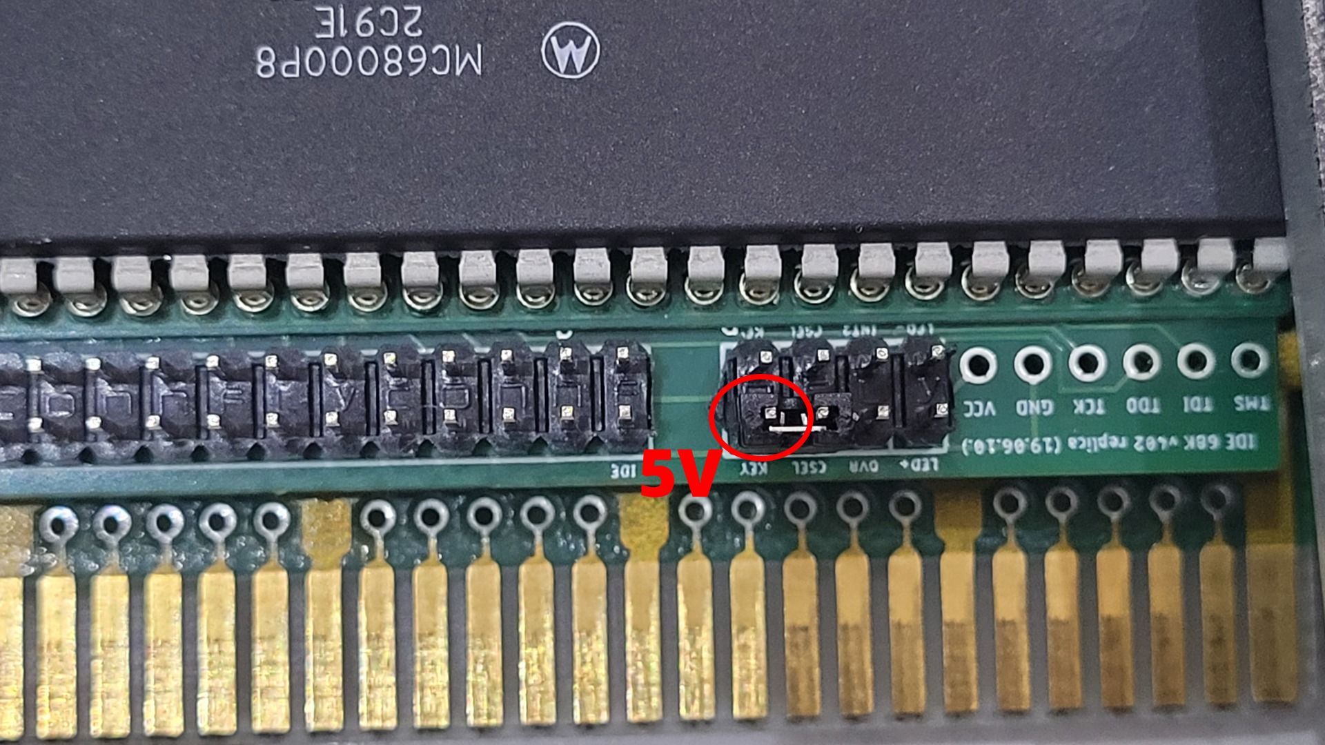 At first, the CF wasn’t powering up. Pin 20 of the IDE connector should provide +5 V for powering CF cards, but I measured 0 V.