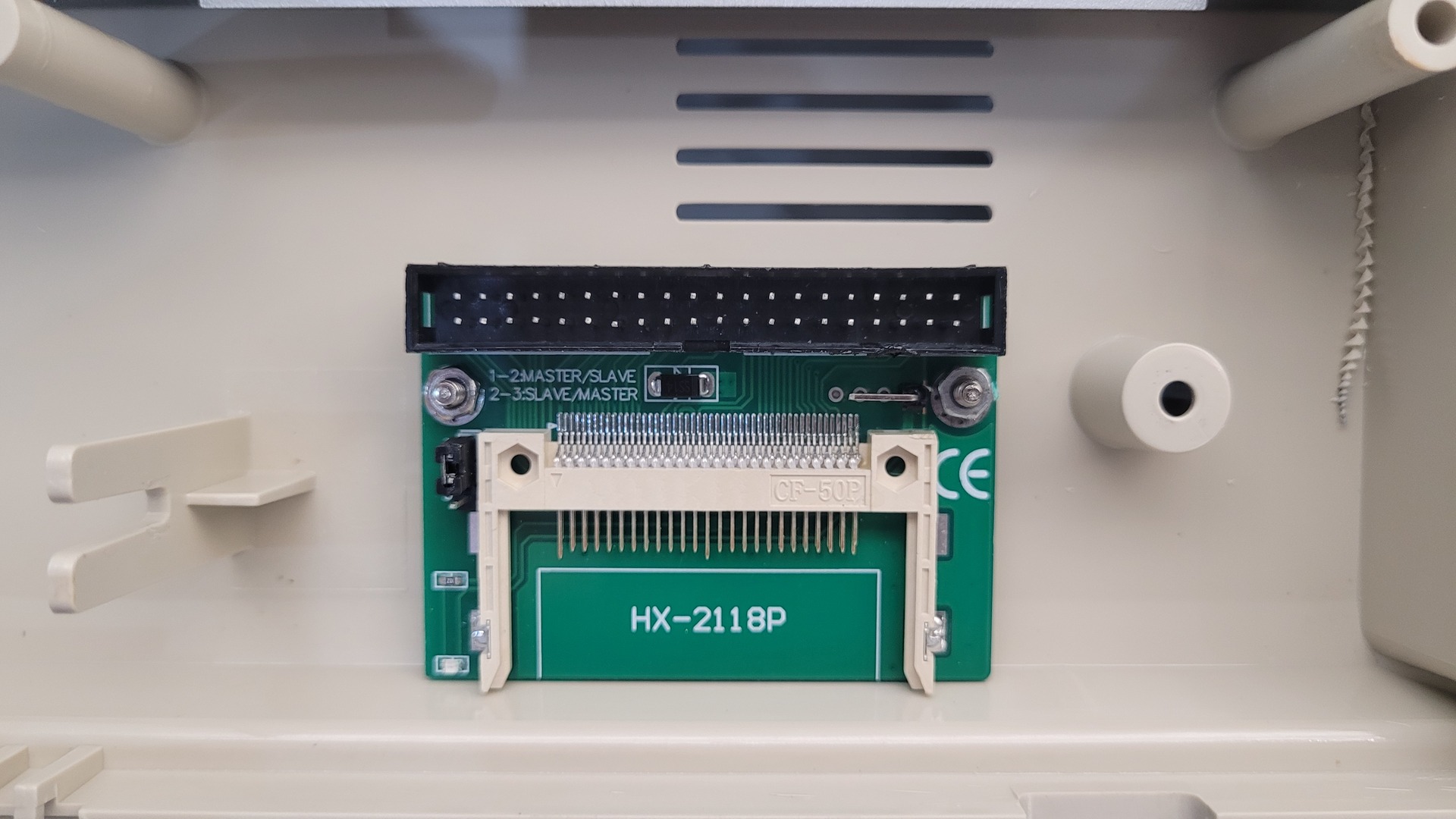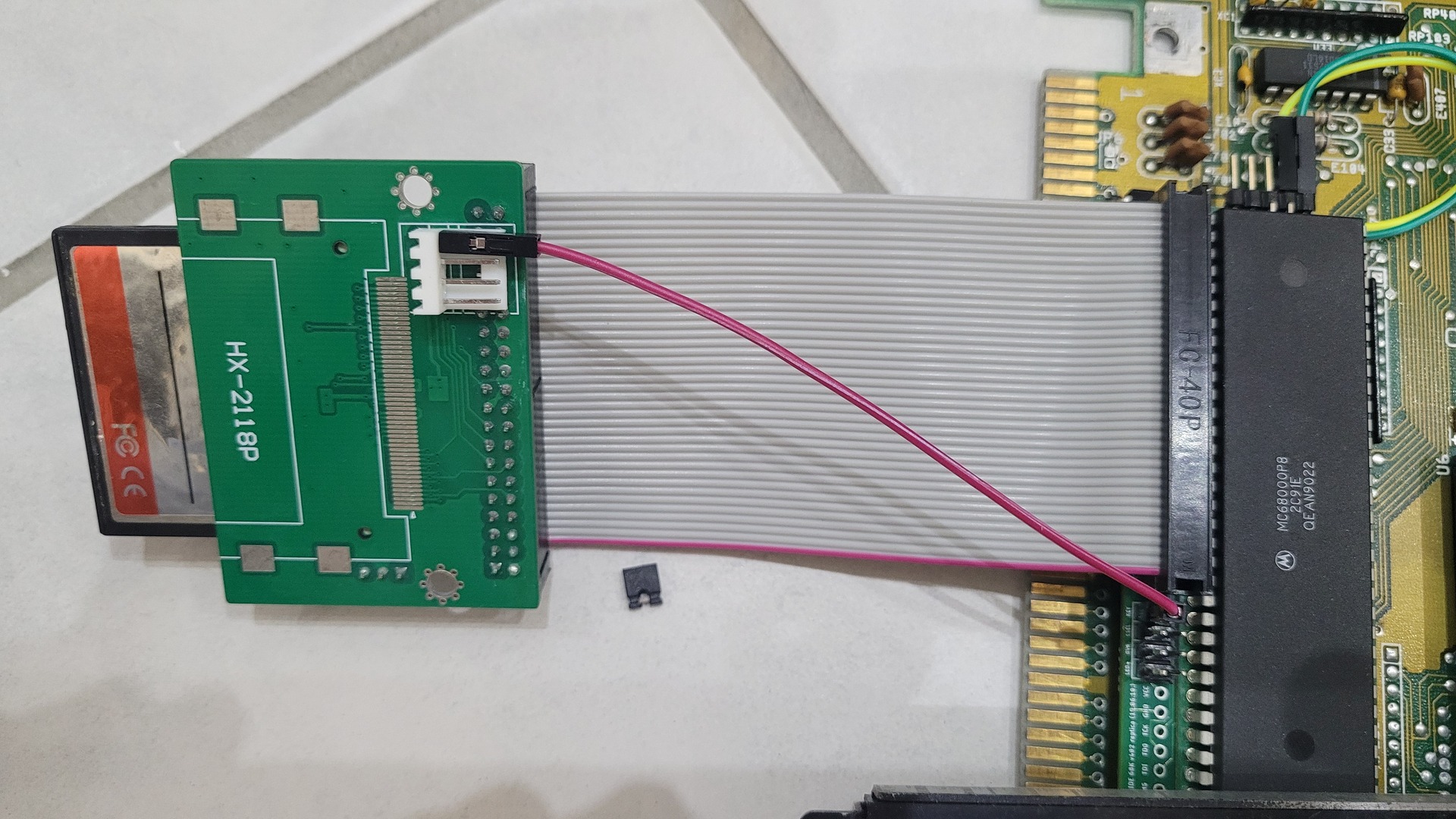 Because of the new placement, I needed a longer ribbon cable between the CF adapter and the IDE controller.