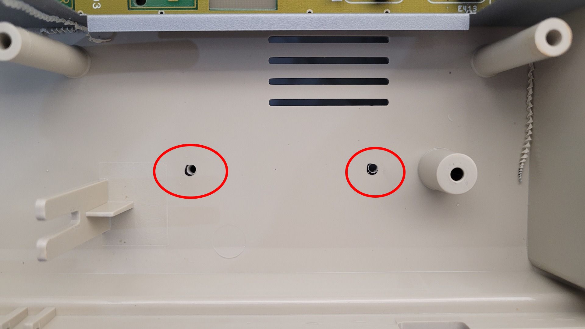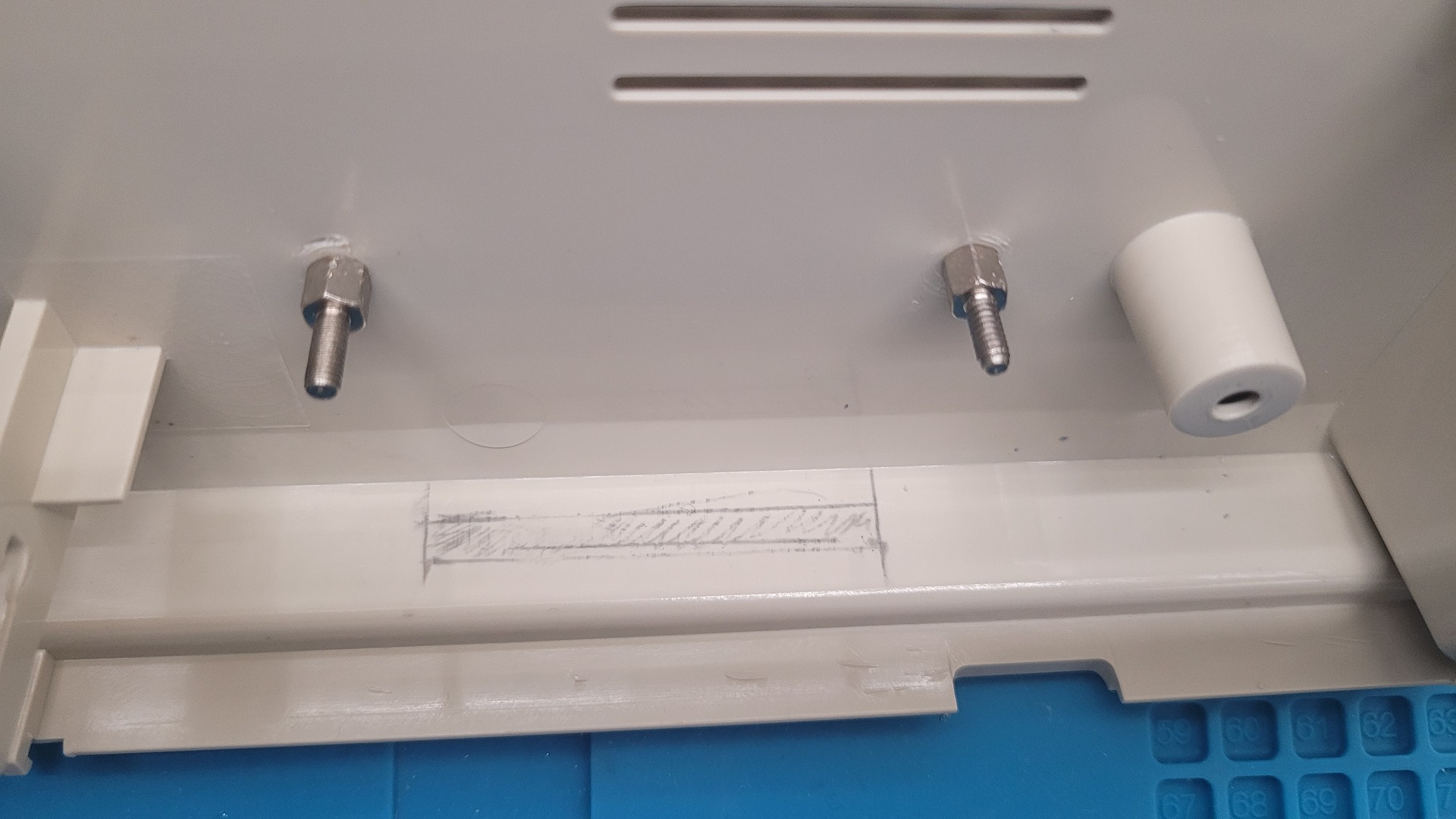 I began by drilling two holes to mount the reader from the underside of the chassis: