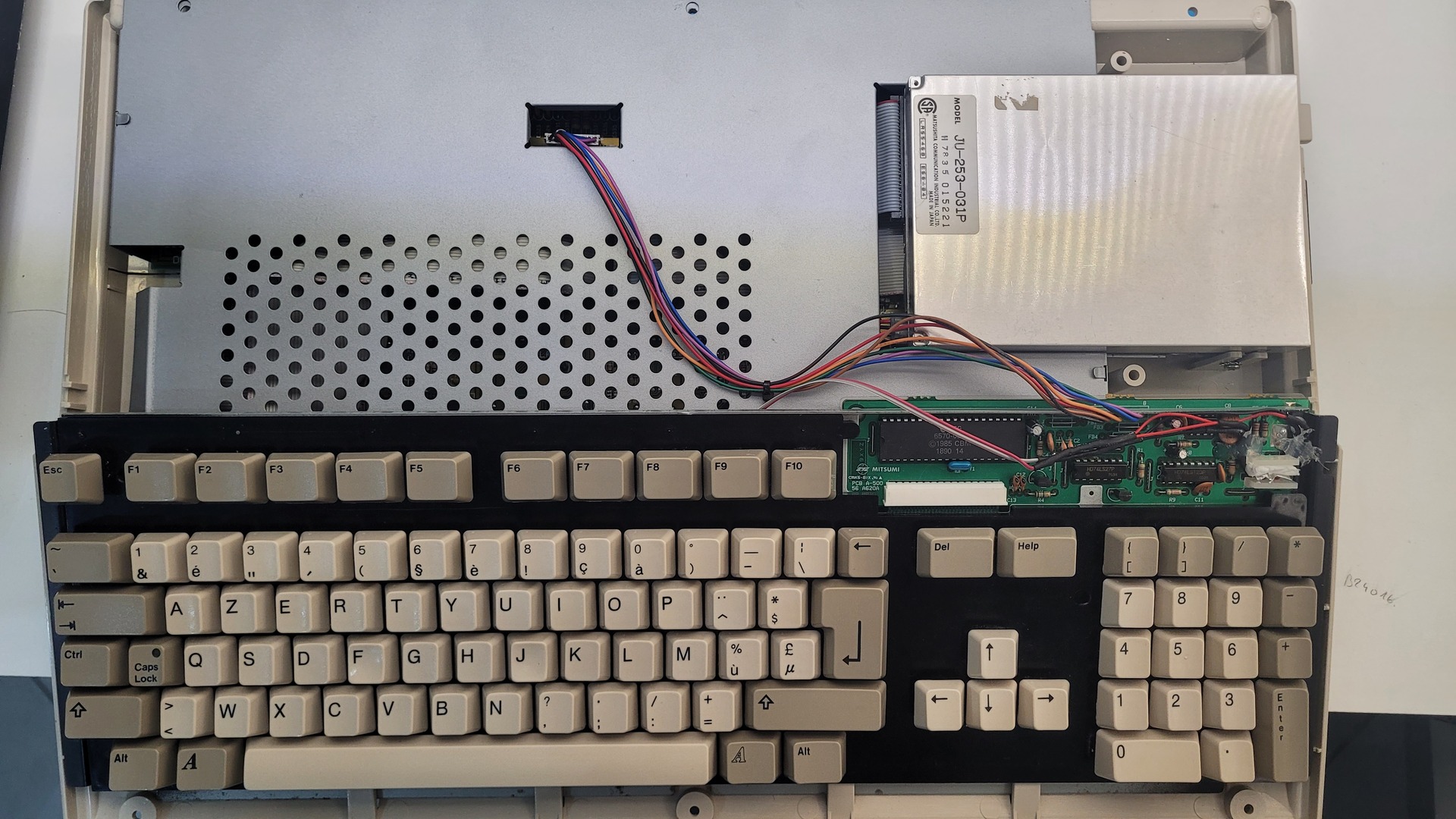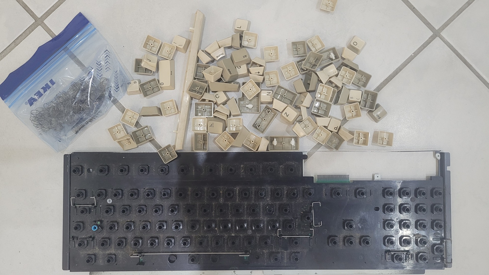 The keyboard was covered in dust and had a noticeable yellow tint. I removed all the keys to thoroughly clean each part and also subjected them to the Retrobright process.