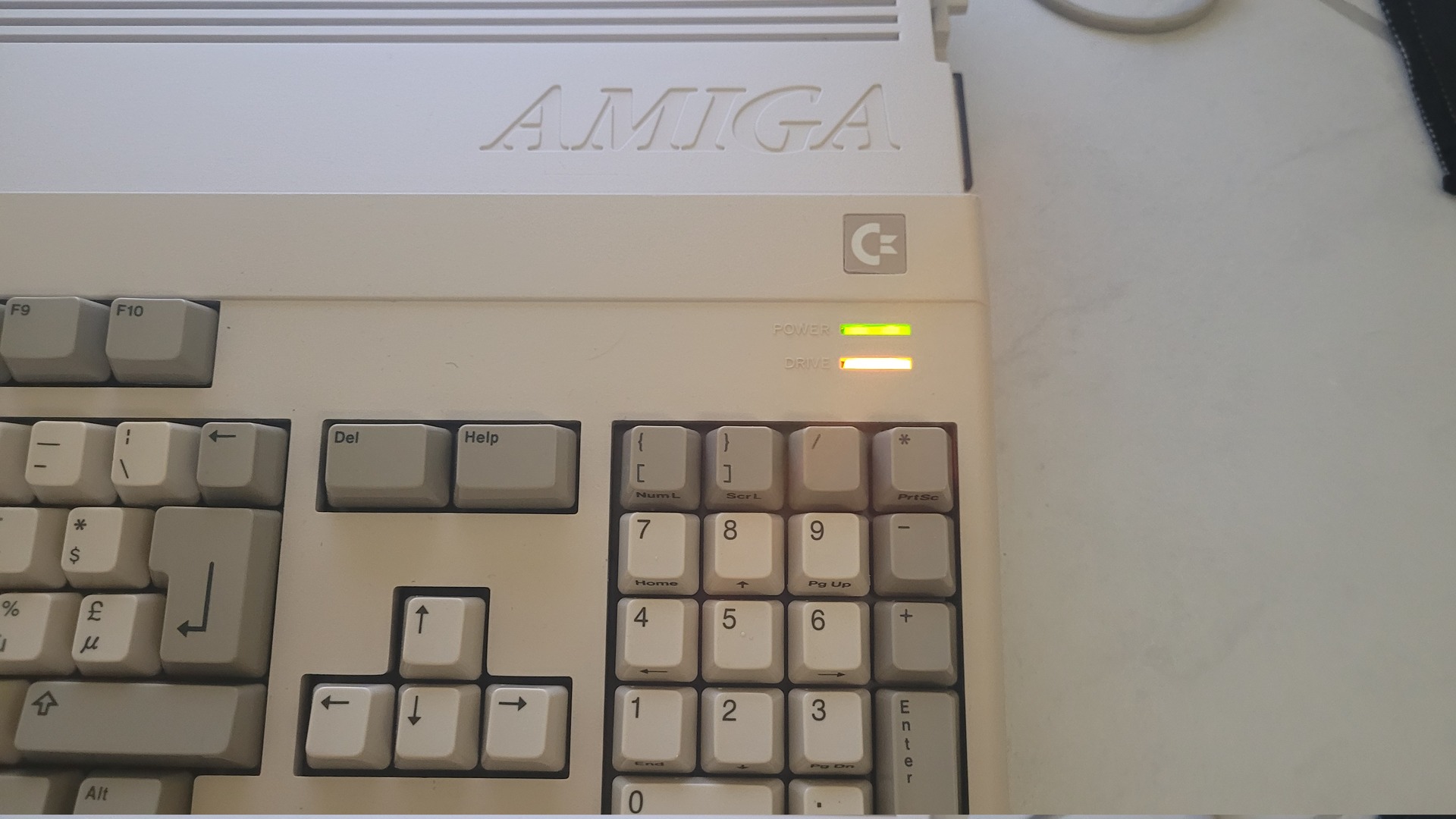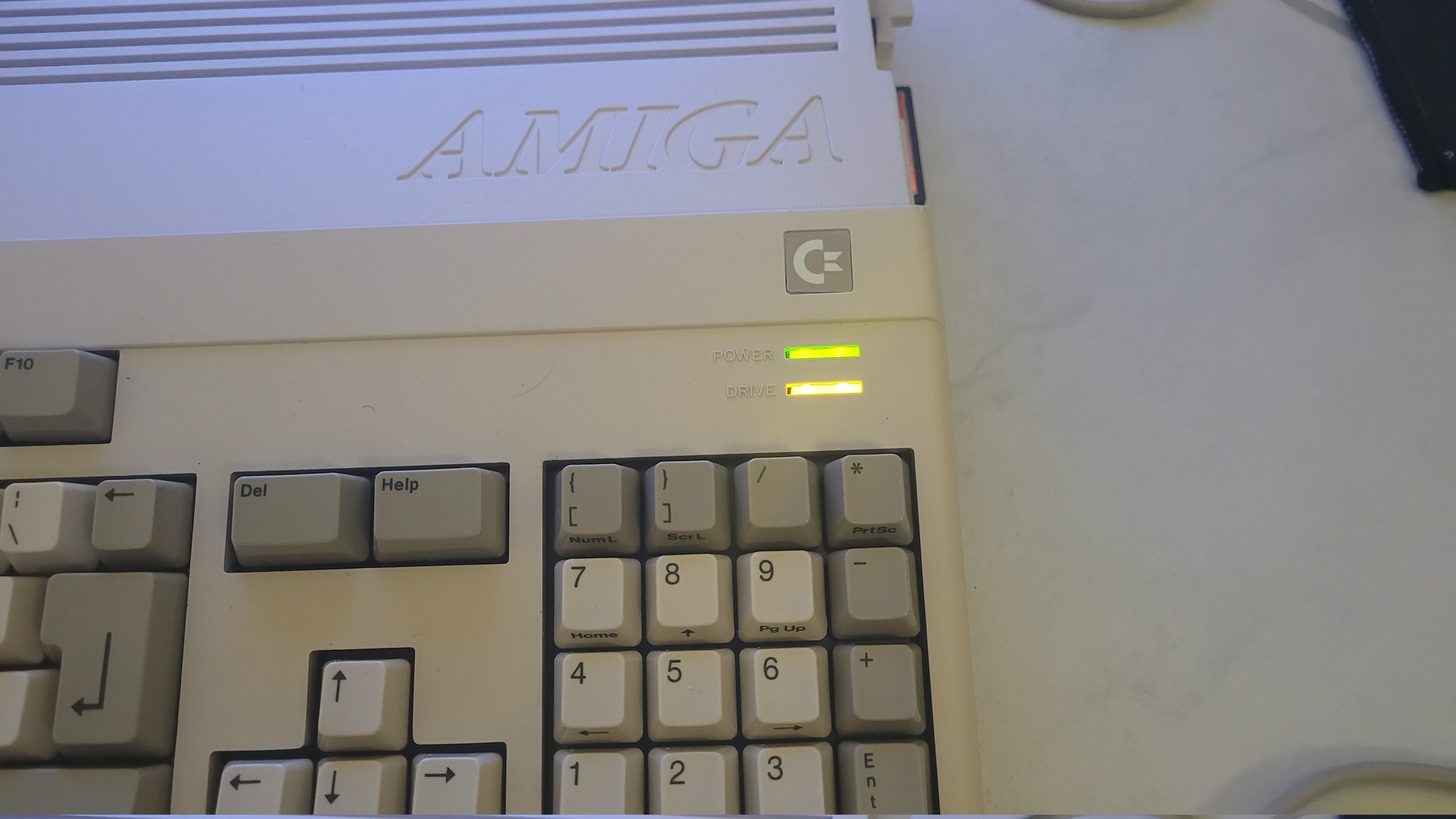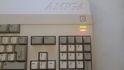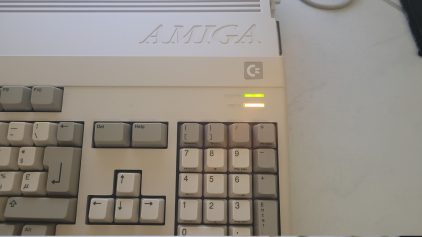 I used two 3 mm LEDs glued between the Amiga’s two original indicators.