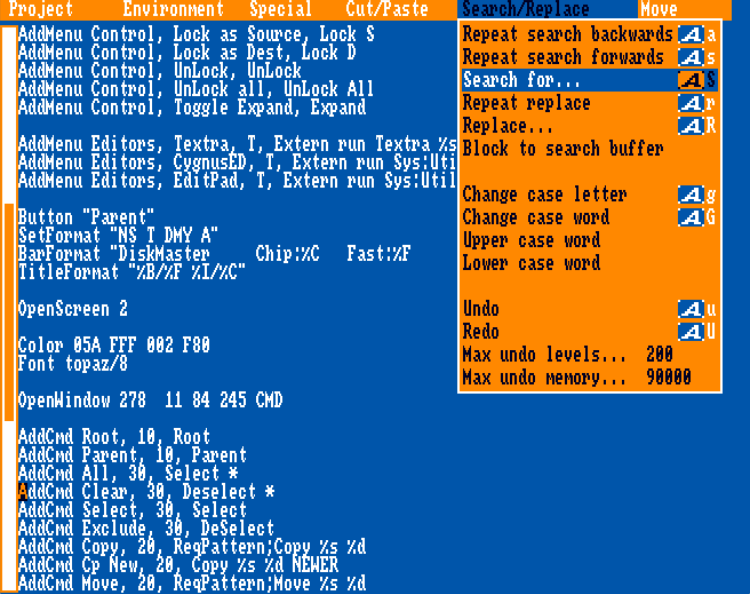 Once you have a proper file manager, the next thing you’ll do most often while configuring and customizing Workbench 1.3 is editing configuration files. For this reason, I installed two excellent text editors — far superior to the default NotePad or ED.
